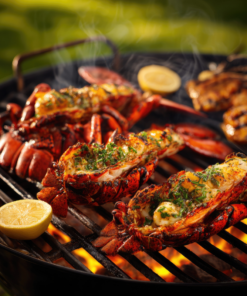 Engrasa ligeramente la parrilla del asador. Coloca las colas, con la carne marinada hacia abajo. Cocina entre 10 y 12 minutos, volteando una vez, y barnizando a menudo con la salsa de limón. La langosta estará lista cuando se vea opaca y se sienta firme al tacto.