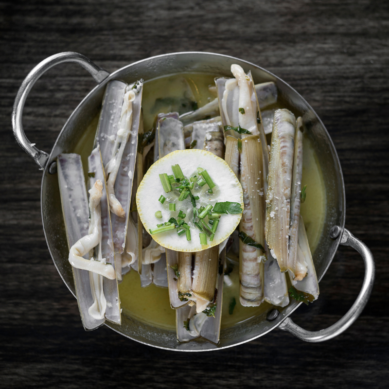 Sugerencia: Prepara una paella de mariscos resaltando la almeja navaja como ingrediente estrella.