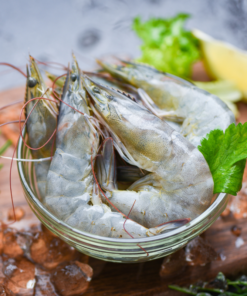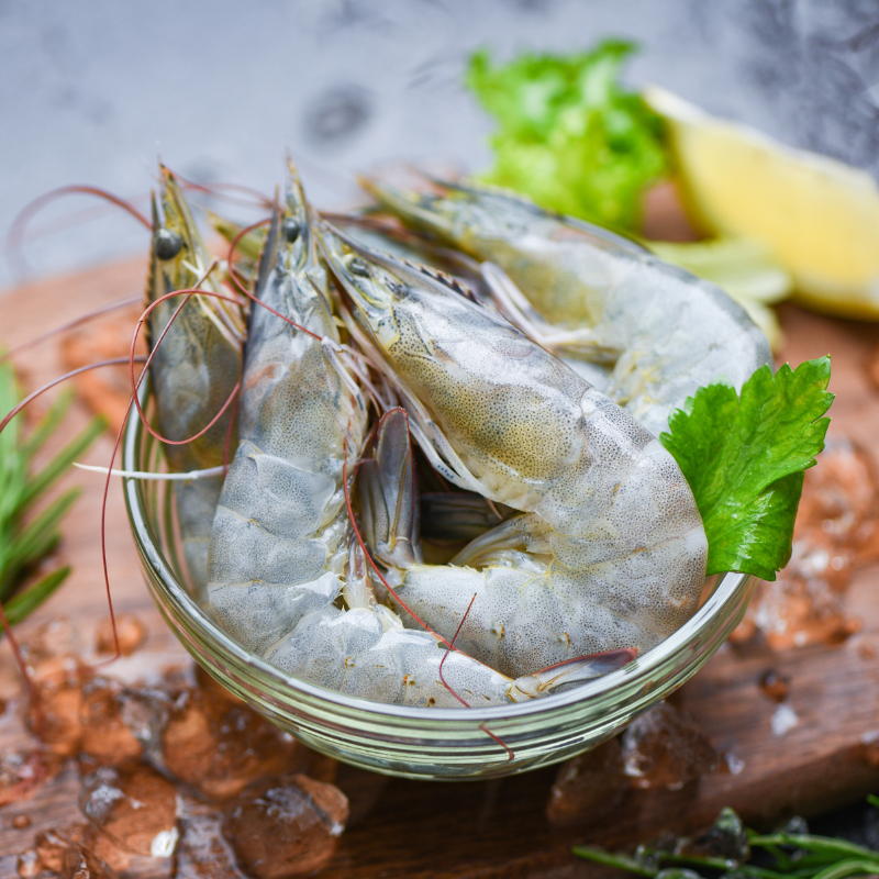 Camarones de calidad premium, sin cabeza, resaltando su jugosidad.