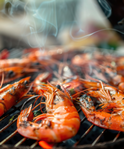Sugerencia: Prepara estos jugosos camarones, con cabeza para intensificar el sabor, se preparan en una exquisita mezcla de ajo y especias que realzan su frescura,