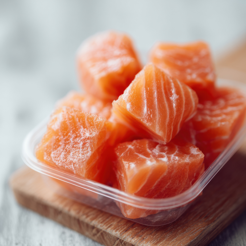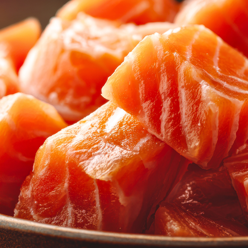 Convenientes y frescos, nuestros cubos de salmón son perfectos para ensaladas, bowls y ceviches. Una opción versátil para explorar creativamente en la cocina.
