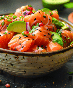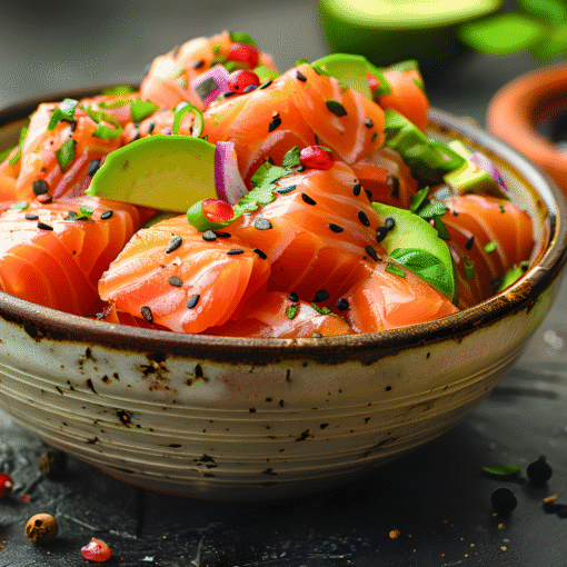 Sugerencia: Crea un ceviche vibrante con cubos de salmón, aguacate y cilantro.