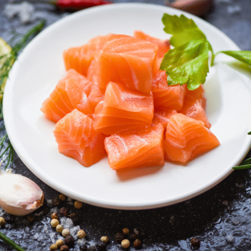 Convenientes y frescos, nuestros cubos de salmón son perfectos para ensaladas, bowls y ceviches. Una opción versátil para explorar creativamente en la cocina.
