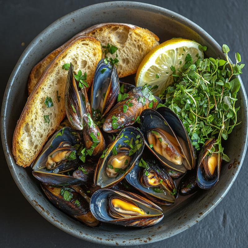 Sugerencia: Prepara mejillones a la marinera con tomate y vino blanco.