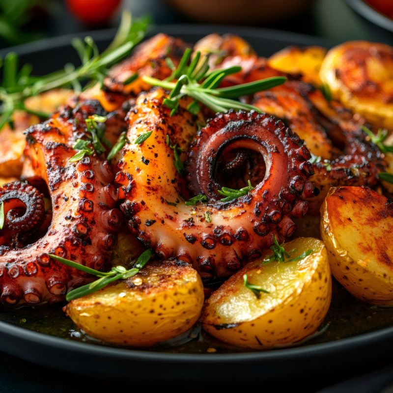 Exquisito pulpo, textura perfecta, sabor que conquista.