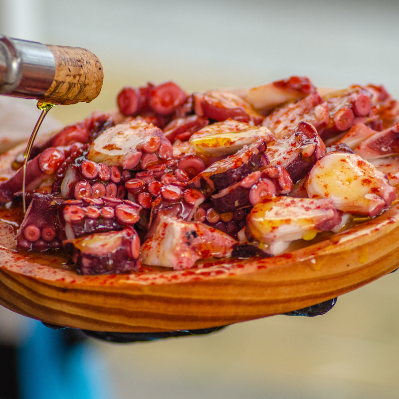 Sugerencia: Corta el pulpo cocido en rodajas y sírvelo en un plato. Rocía con aceite de oliva extra virgen, espolvorea pimentón y sal al gusto.